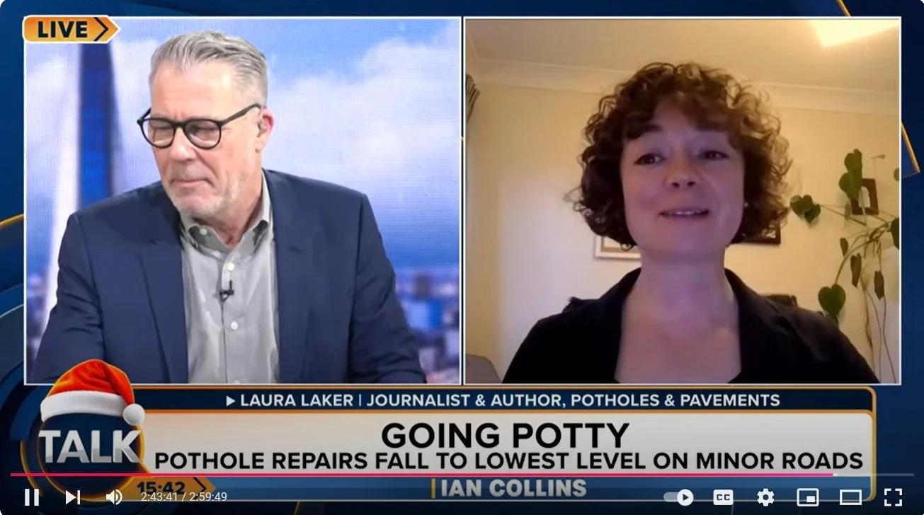 In January 2025 I was invited to discuss potholes on Talk Radio! Sadly I can’t find the full interview but it was a fun chat - the presenter thought my book was about potholes, and I thought I was going on Times Radio. We managed to find common ground, agreeing potholes are bad for everyone. Sometimes a surprise can be better than something you’ve prepared for!
